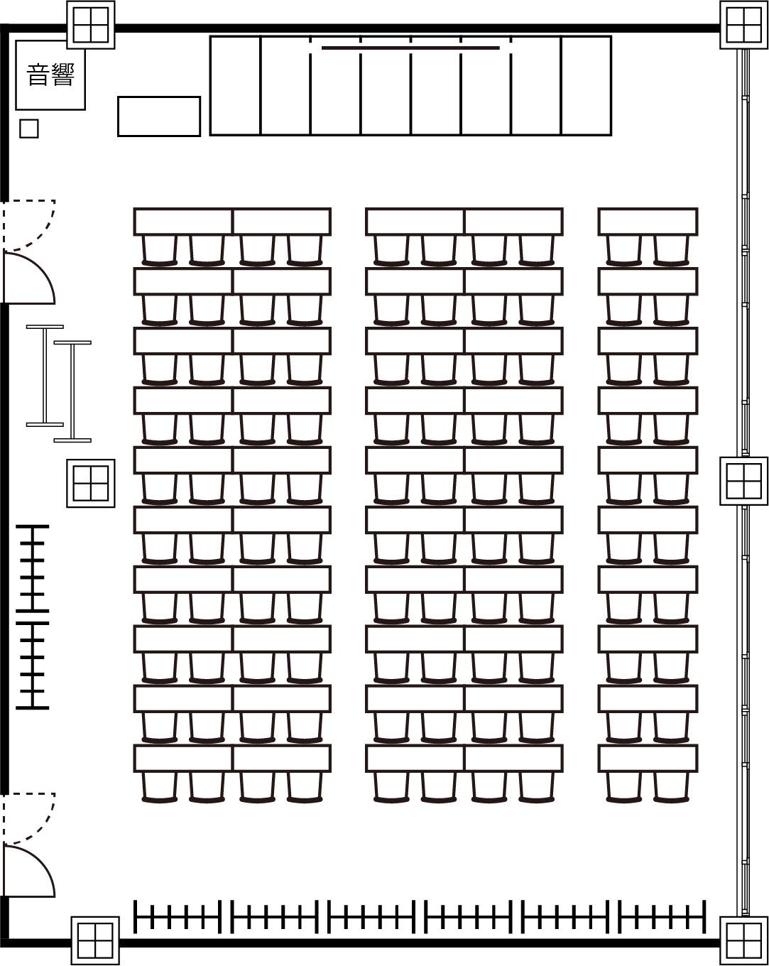 「スクール形式(2人掛け)・(3名掛け)」以外のレイアウトをご希望の場合は会場設営費を頂戴いたします。