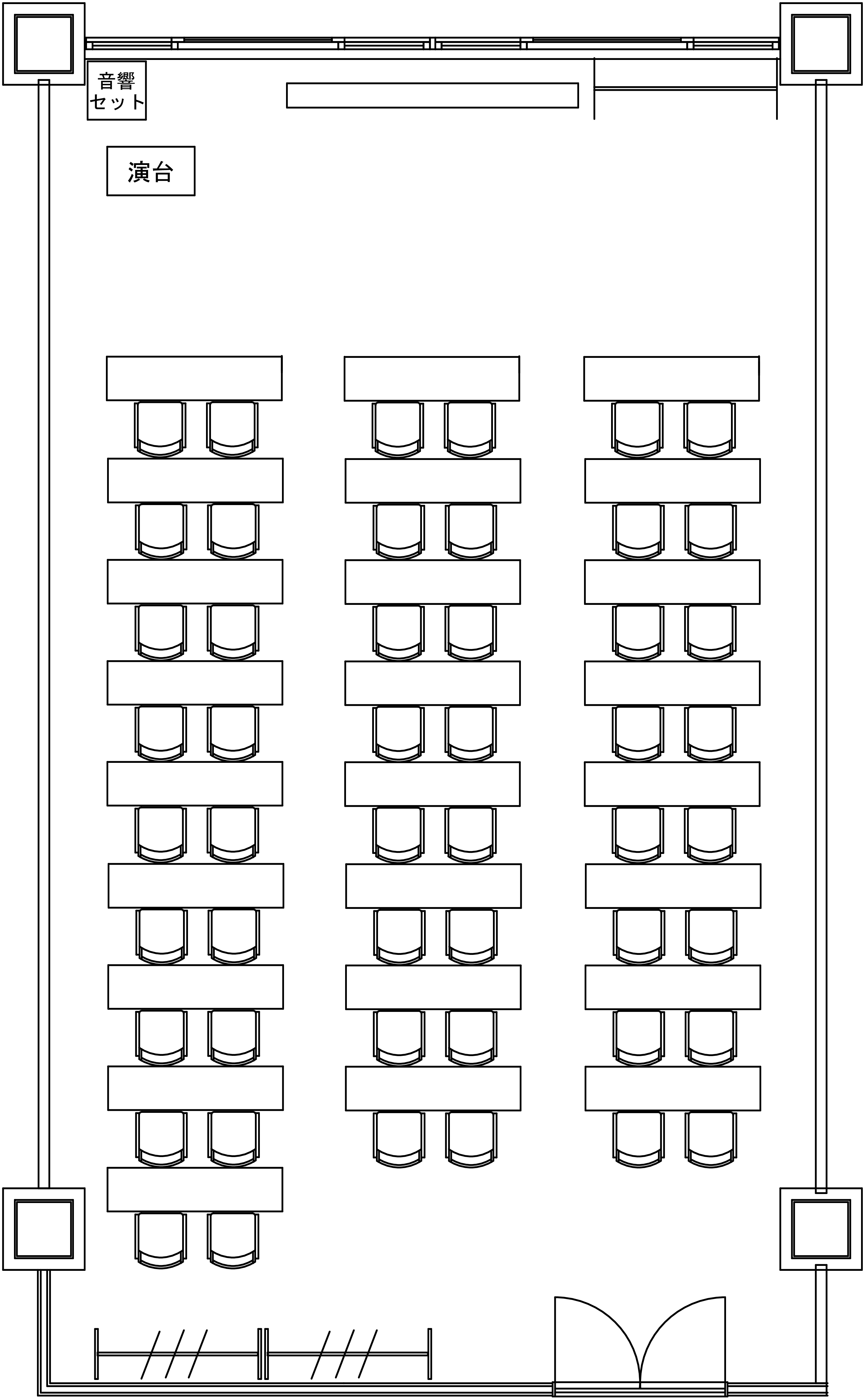 「スクール形式(2人掛け)・(3名掛け)」以外のレイアウトをご希望の場合は会場設営費を頂戴いたします。
